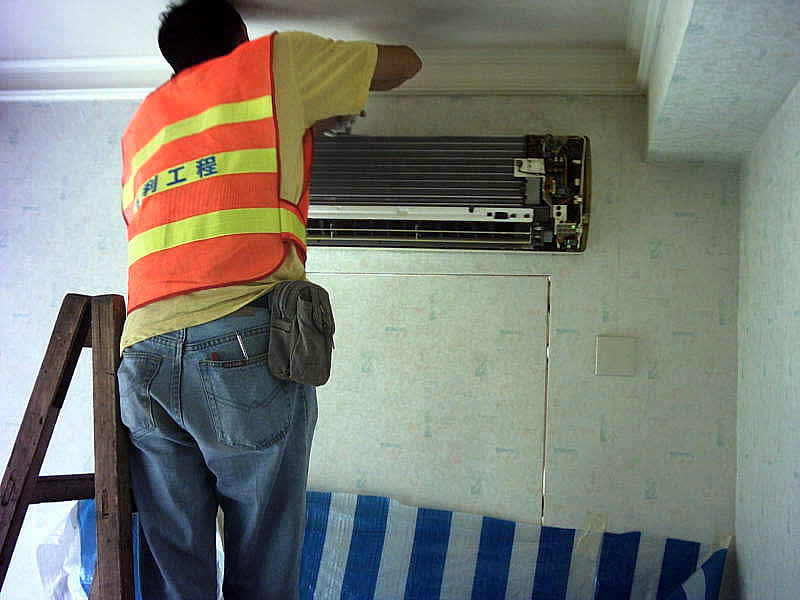 安裝冷氣機中